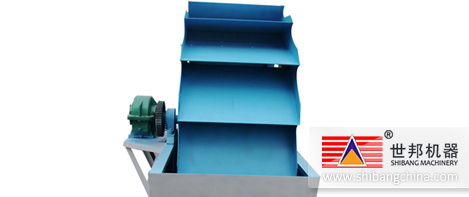 工作時(shi),電機通過三角(jiao)帶、減速(su)機、齒輪(lun)減速(su)后帶動葉輪(lun)緩(huan)慢轉(zhuan)(zhuan)動,砂石有(you)給料槽進(jin)入洗(xi)槽中,在葉輪(lun)的(de)(de)帶動下翻(fan)滾(gun),并互相研磨,除去覆蓋砂石表面的(de)(de)雜(za)質(zhi),同(tong)時(shi)破壞(huai)包覆砂粒的(de)(de)水汽層,以利(li)于脫水;同(tong)時(shi)加水,形成(cheng)強大水流(liu),及時(shi)將雜(za)質(zhi)及比重(zhong)小的(de)(de)異物帶走,并從(cong)溢出(chu)(chu)(chu)口洗(xi)槽排出(chu)(chu)(chu),完(wan)成(cheng)清洗(xi)作用。干凈(jing)的(de)(de)砂石由葉片帶走,砂石從(cong)旋轉(zhuan)(zhuan)的(de)(de)葉輪(lun)倒入出(chu)(chu)(chu)料槽,完(wan)成(cheng)砂石的(de)(de)清洗(xi)作用.